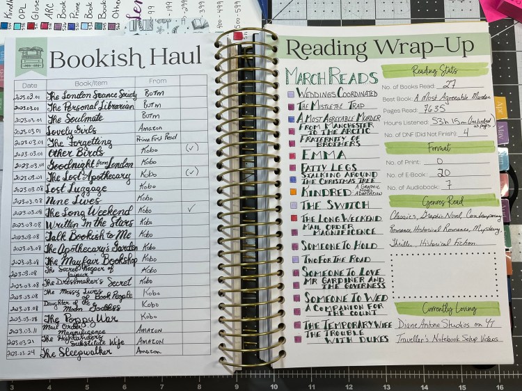 I spent some time and updated my reading stats in my planner this past weekend. First up is my reads for the month, and my purchases.