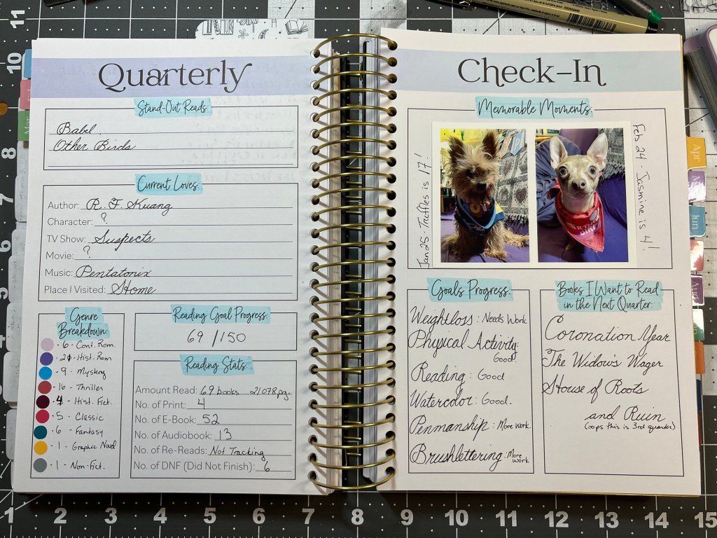 I’m really enjoying using all the pages this year and getting into playing with charts and things. This is my third year using this planner to track my reading, but this is the first year I’ve really used all the pages, and it makes it a lot of fun!